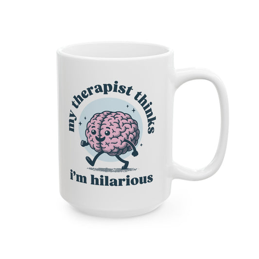 'My therapist thinks i'm hilarious' Ceramic Mug (11oz, 15oz)